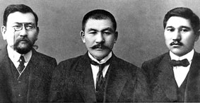 Солдан оңға қарай: Ахмет Байтұрсынұлы, Әлихан Нұрмұхамедұлы Бөкейхан, Міржақып Дулатұлы