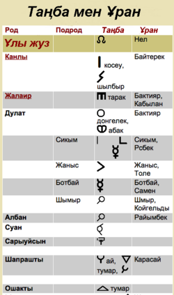 Талдықорған қаласының солтүстік шығыс жағындағы Дауылбай тауында Дулаттың шеңбер таңбасы (қосымшаларымен қоса) шекілген тастар көп. Мұнда солармен аралас арғынның «көз» таңбасы, найманның «айқыш» таңбасы, үйсіннің «тарақ» таңбасы да кездеседі. Шыңғыстаудағы Көпмолада бұл таңбаларға қыпшақтың «әліп» таңбасы қосылған. Осы таңбалар Қу, Қойтас (Көкшетау облысы) тауларындағы молаларда да ұшырайды.
