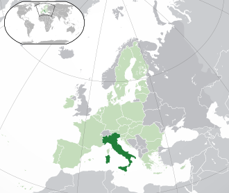 Италияның орналасуы (қою жасыл):