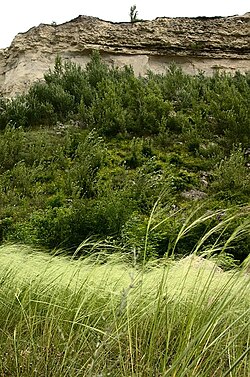 Астық тұқымдас өсімдіктердің арасынан хош иісті жабайы сәбіздің ақшыл жасыл түсті гүлдерінің шатыр тәрізді себеттері көтеріліп тұрады. Бұршақ тұқымдас өсімдіктерден сары гүлді жоңышқа мен күлгін бұршақ бар.