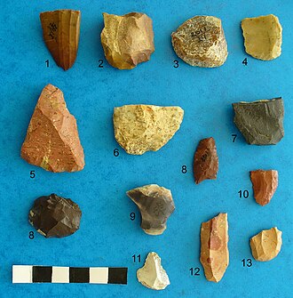 Әртүрлі микролиттерді дайындау, оның ішінде геометриялық бейнелі құралдар - сегменттер, трапециялар, үшбұрыштар, тікбұрыштар, параллелограммдар өндірісі кеңінен дами бастайды. Микролиттер дайындауда қолданылатын микроқиятын техника дамиды. Балта, шот балта, қашау сияқты кесу құралдарын, макролиттік арнаулы құралдар - кетпен, қайла жасау кең таралады.