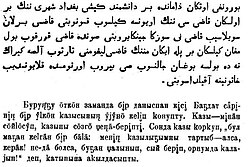 | Barleⱪ adamdar tuwmesenan azat jənê ⱪadir-ⱪasiyêti mên ⱪuⱪeⱪtare têng bolep düniyêgê kêlêdi. Adamdarƣa aⱪel-parasat, ar-ojdan bêrilgên, sondeⱪtan olar bir-birimên tuwesteⱪ, bawermaldeⱪ ⱪarem-ⱪatenas jasawlare tiyis. | Barlyq adamdar tyʼmysynan azat jaʼne qadіr-qasiʼetі men quqyqtary tenʼ bolyp duʼniʼege keledі. Adamdargʼa aqyl-parasat, ar-ojdan berіlgen, sondyqtan olar bіr-bіrіmen tyʼystyq, bayʼyrmaldyq qarym-qatynas jasayʼlary tiʼіs. | Barlyq adamdar týmysynan azat jáne qadіr-qasıetі men quqyqtary teń bolyp dúnıege keledі. Adamdarǵa aqyl-parasat, ar-ojdan berіlgen, sondyqtan olar bіr-bіrіmen týystyq, baýyrmaldyq qarym-qatynas jasaýlary tıіs. | Barlıq adamdar tuwmısınan azat jäne qadir-qasiyeti men quqıqtarı teń bolıp düniyege keledi. Adamdarğa aqıl-parasat, ar-ojdan berilgen, sondıqtan olar bir-birimen tuwıstıq bawırmaldıq qarım-qatınas jasawları tiyis. | Barlıq adamdar twmısınan azat jäne qadir-qasïeti men quqıqtarı teñ bolıp dünïege keledi. Adamdarğa aqıl-parasat, ar-ojdan berilgen, sondıqtan olar bir-birimen twıstıq, bawırmaldıq qarım-qatınas jasawları tïis. |